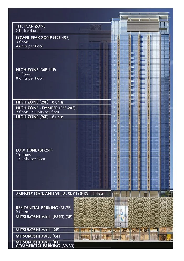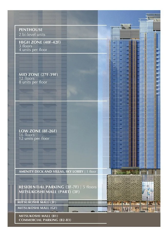 Direct access to Mitsukoshi Mall through shuttle elevators located at the Ground Floor Lobby of Towers A & B